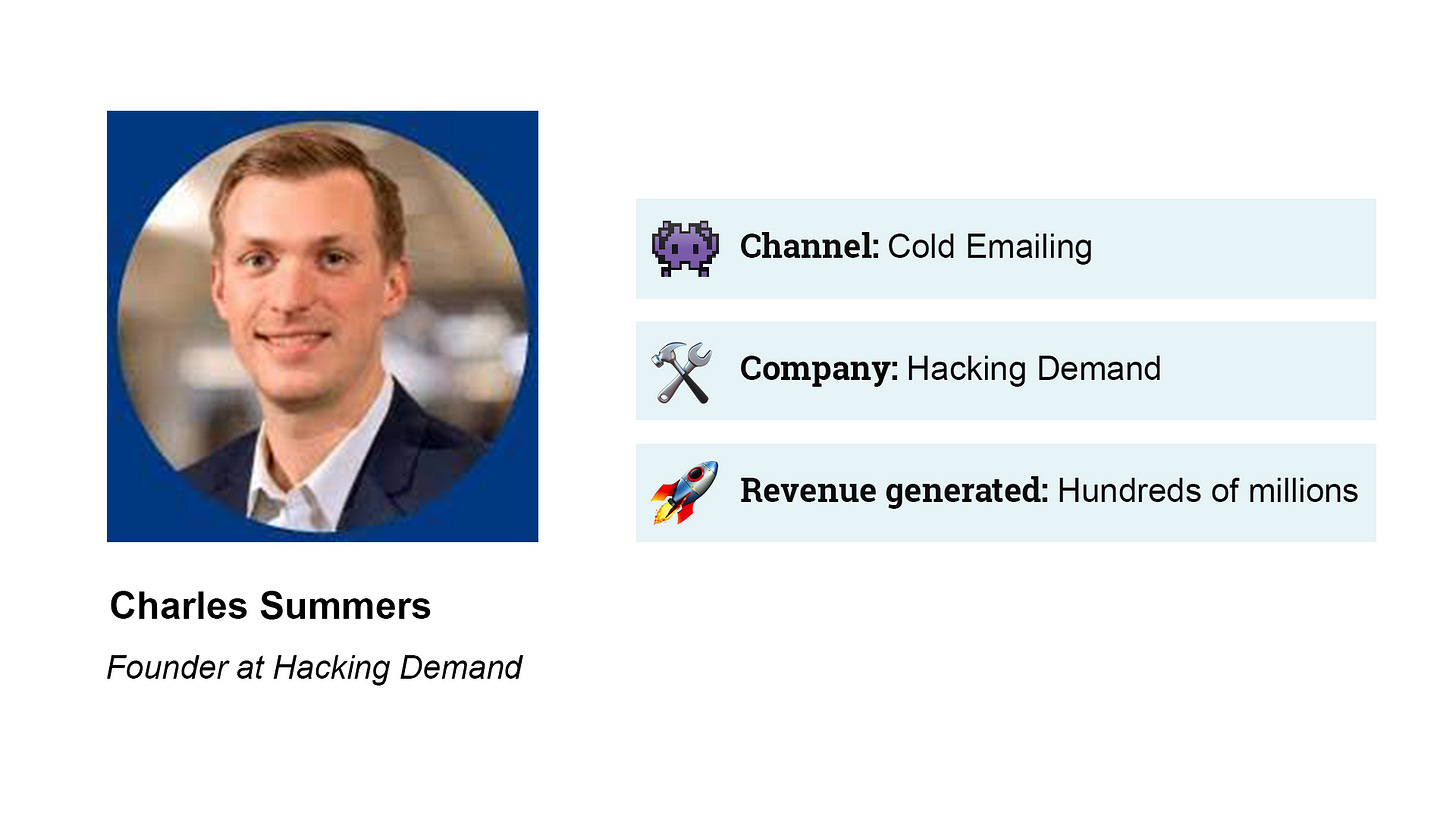 Charles is the current founder of Hacking Demand, and has worked on a wide range of growth and demand efforts for various startups. In this growth story, we’ll be focusing on his cold emailing expertise. I’ve been able to witness this first-hand working with Charles at SafetyWing.